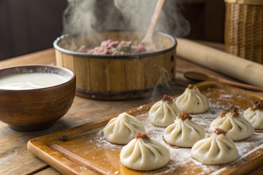- Technika formowania – mleczne chinkali są zazwyczaj mniejsze i delikatniejsze, z cieńszym ciastem, aby zapobiec wyciekaniu płynnego nadzienia