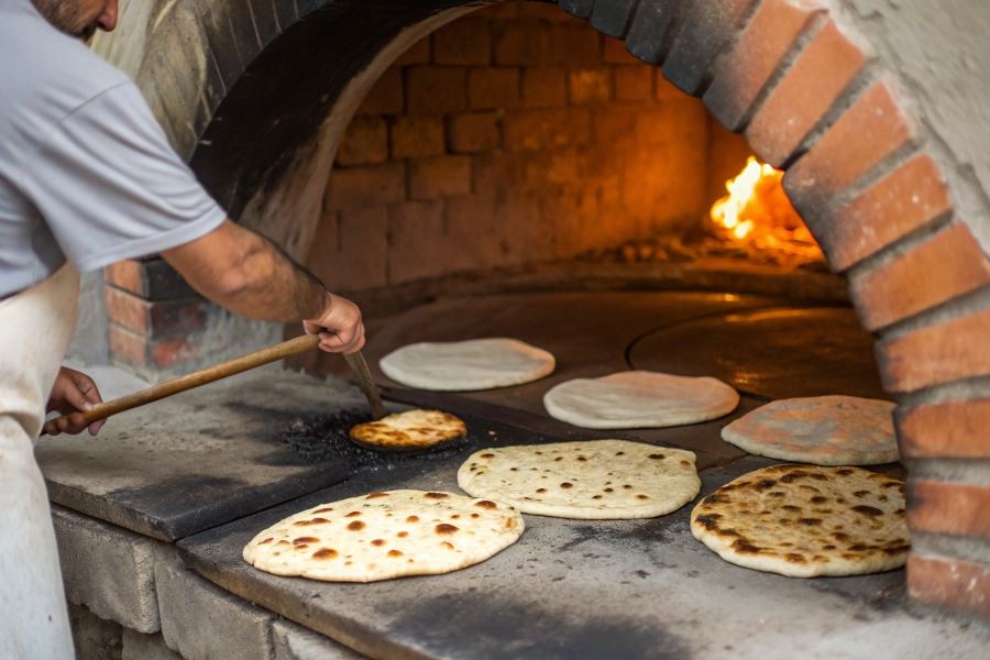 Proces wypieku lawasza to prawdziwa sztuka kulinarna. Tradycyjnie przygotowuje się go w specjalnym piecu zwanym tone (lub tonir), który ma kształt glinianego dzbana wkopanego w ziemię. Ciasto składa się z prostych składników: mąki pszennej, wody i soli, czasem z dodatkiem drożdży. Po wyrobieniu i odpoczynku, ciasto rozwałkowuje się na cienki placek, który następnie przykleja się do rozgrzanych ścian pieca. Wypiek trwa zaledwie 30-60 sekund, a chleb zdejmuje się ze ściany pieca za pomocą specjalnego narzędzia.
