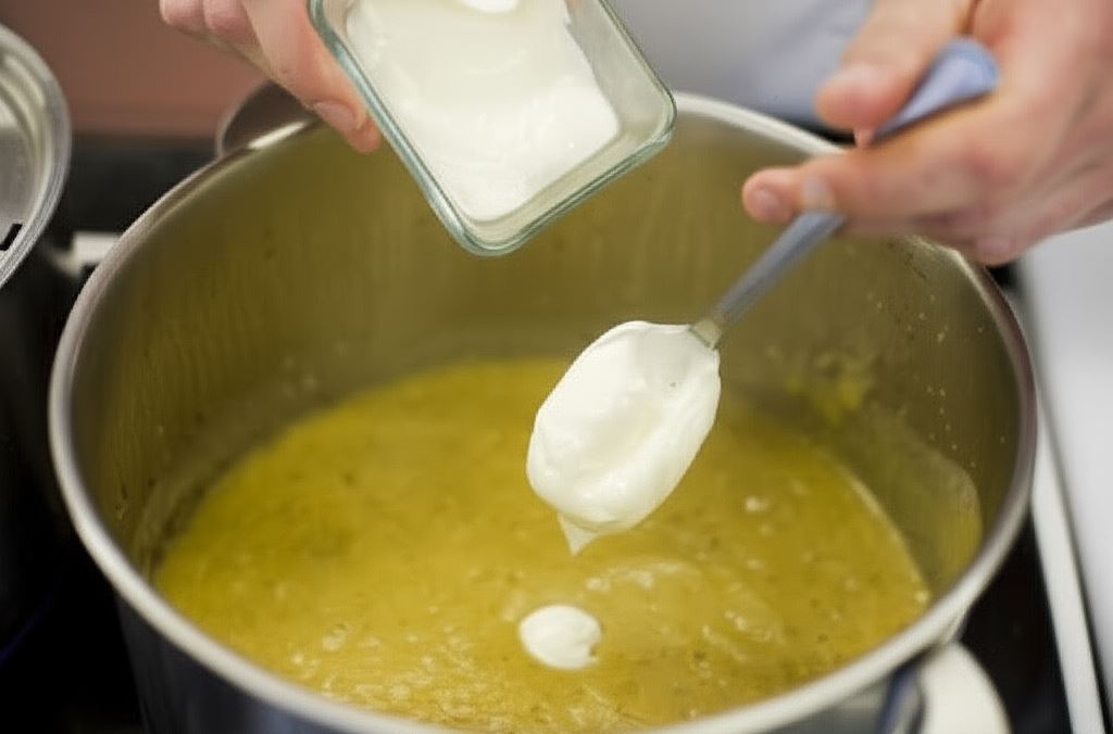 Zagęść zupę ziemniaczaną śmietaną, doprowadź do wrzenia i serwuj.