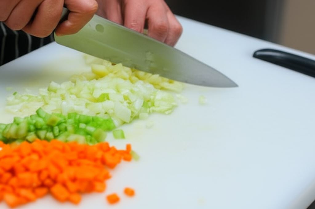 Ziemniaki, cebulę, czosnek, marchew oraz seler naciowy posiekaj na drobne kawałki.
