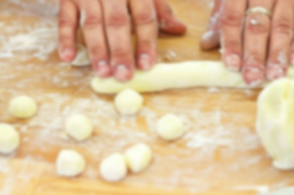 Każdą porcję ciasta uformuj w dłoniach, (w razie potrzeby podsyp ją dodatkową mąką) na niewielką kulkę, którą potem przyciśnij widelcem aby utworzyć charakterystyczny wzorek. Gotuj w delikatnie osolonej wodzie około 2 minut.