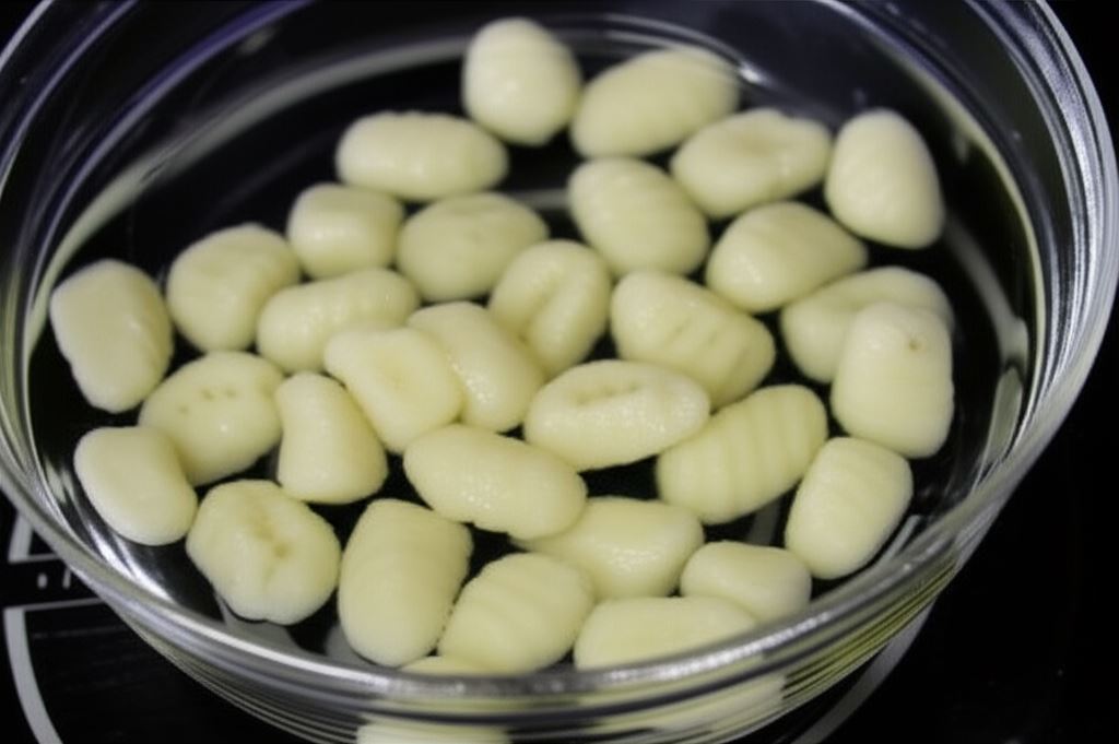 Przygotowane gnocchi ugotuj przez około 2-3 minut w delikatnie posolonym wrzątku.