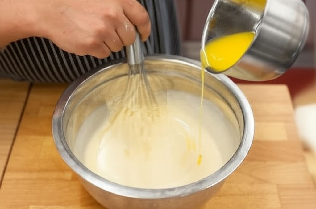 Roztop margarynę i po wystudzeniu połącz z pozostałymi składnikami. Na końcu dodaj ubite białka.