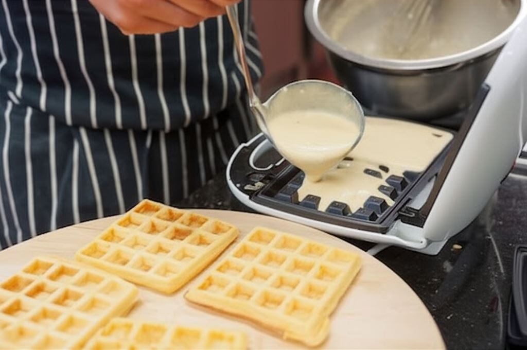Sporządź gofry w gofrownicy. Gofry wypiekaj przez około 3 – 4 minuty do momentu zrumienienia.