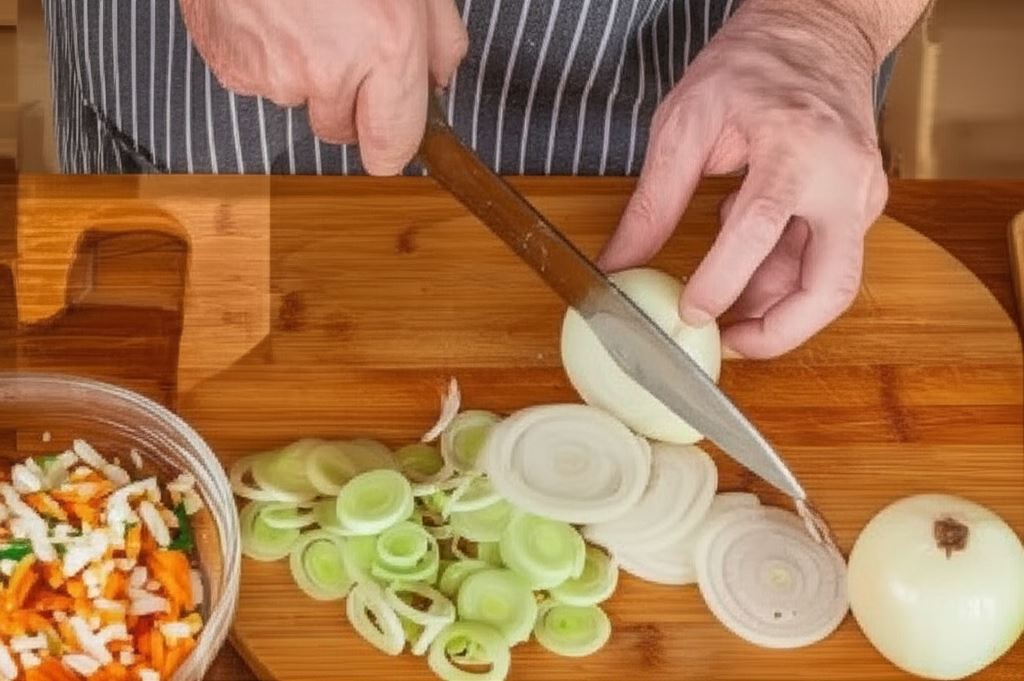 Włoszczyznę opłucz i obierz. Twarde warzywa zetrzyj na tarce. Pora z włoszczyzny oraz cebule pokrój na plasterki.