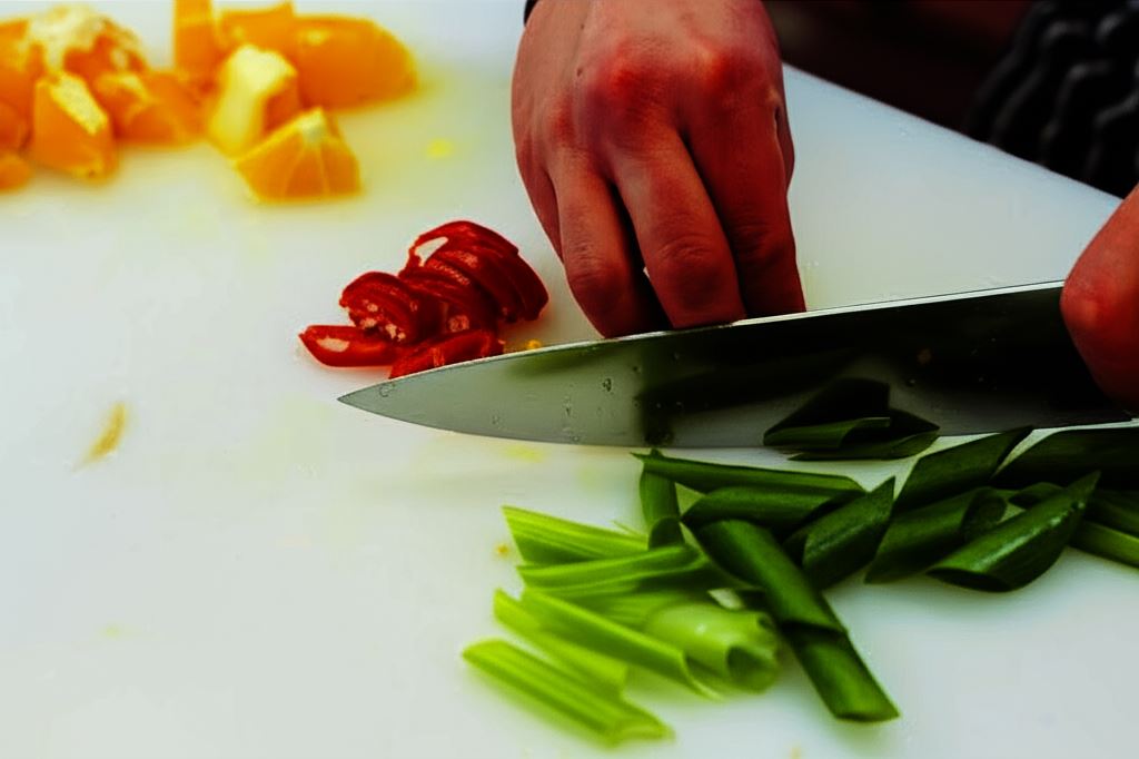 Kurczaka starannie opłucz i wysusz. Z pomarańczy zdejmij cienko skórkę i pokrój miąższ. Dymki wraz ze szczypiorkiem i papryczkę posiekaj.