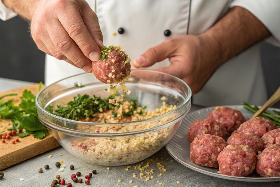 Bułka tarta choć nie jest bezzbożowa, pozostaje klasycznym zamiennikiem ryżu w pulpetach. Jej wyjątkowe właściwości wiążące sprawiają, że masa mięsna zachowuje kształt podczas smażenia czy gotowania. Dla osób unikających glutenu dostępne są bezglutenowe alternatywy bułki tartej wykonane z mąki kukurydzianej lub ryżowej, które równie skutecznie spełniają swoją funkcję.