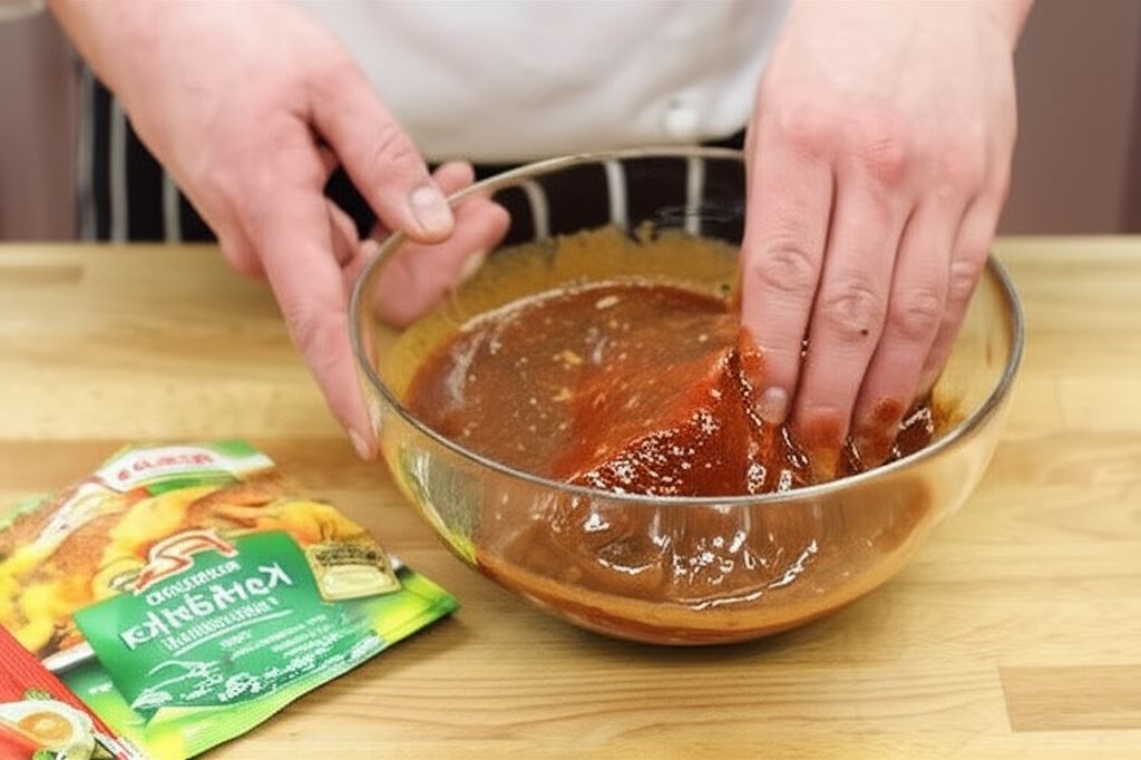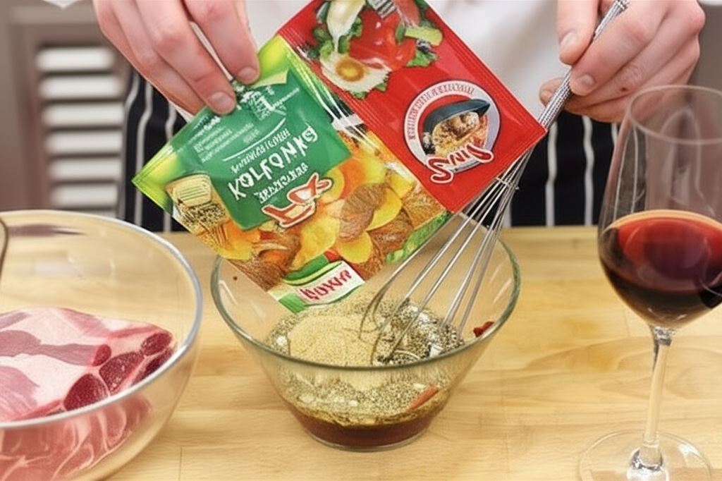 Zawartość paczki Knorr wymieszaj z koncentratem, oregano, posiekanym czosnkiem, oliwą i winem.