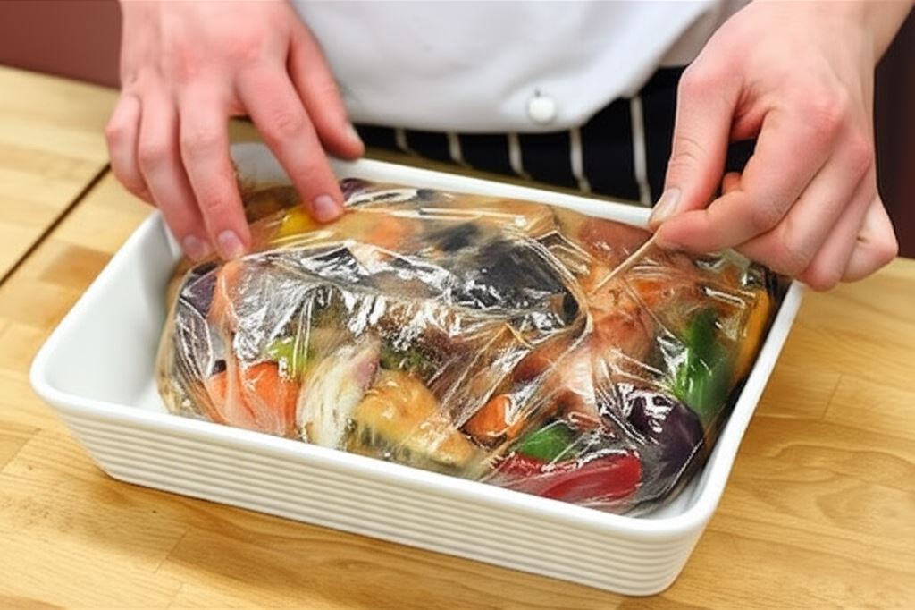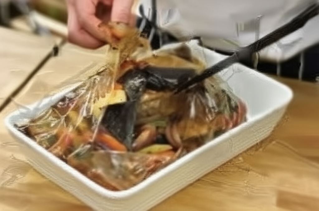 Po tym czasie woreczek ostrożnie rozetnij. Uzyskany sos razem z warzywami przelej do rondelka i dopraw według smaku. Mięso pokrój na plastry i serwuj z sosem oraz np. kaszą.