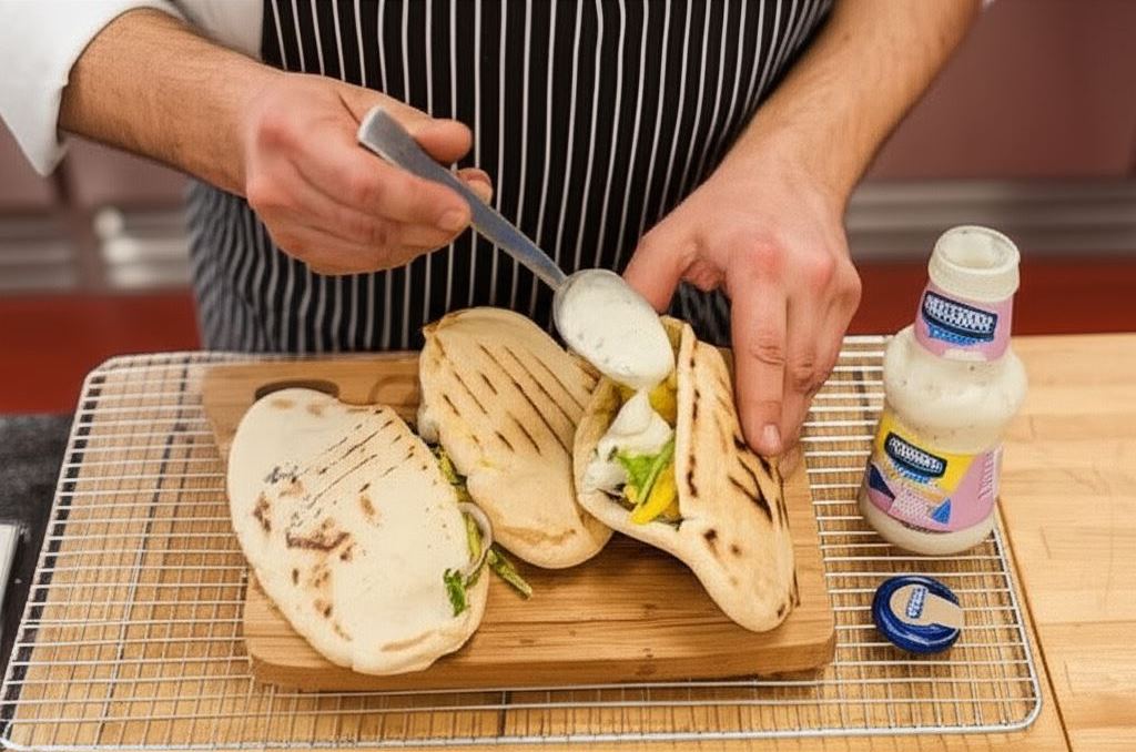 Przenieś się na słoneczne wybrzeże Grecji bez wychodzenia z domu! Nasze greckie pity z grillowaną papryką i serem halloumi to prawdziwa uczta dla podniebienia. Chrupiące z zewnątrz, a miękkie w środku chlebki pita skrywają aromatyczne połączenie grillowanej papryki, sera halloumi o delikatnie słonym smaku oraz świeżych warzyw. Całość dopełnia kremowy sos czosnkowy Hellmann’s, który nadaje potrawie niepowtarzalny charakter.