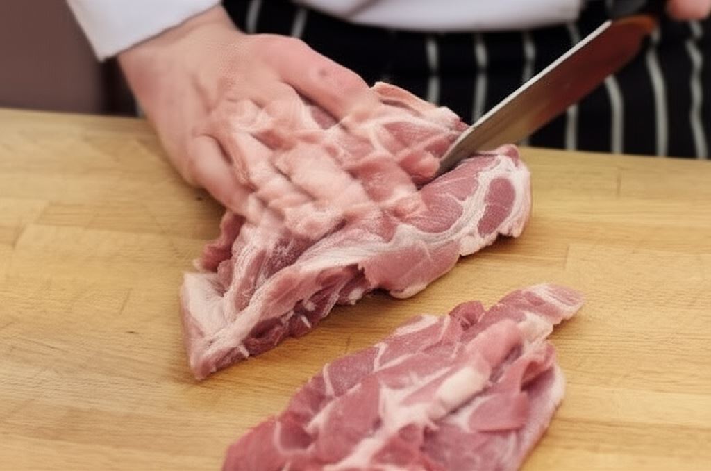 Mięso opłucz, wysusz i potnij w plastry o grubości 1 cm.