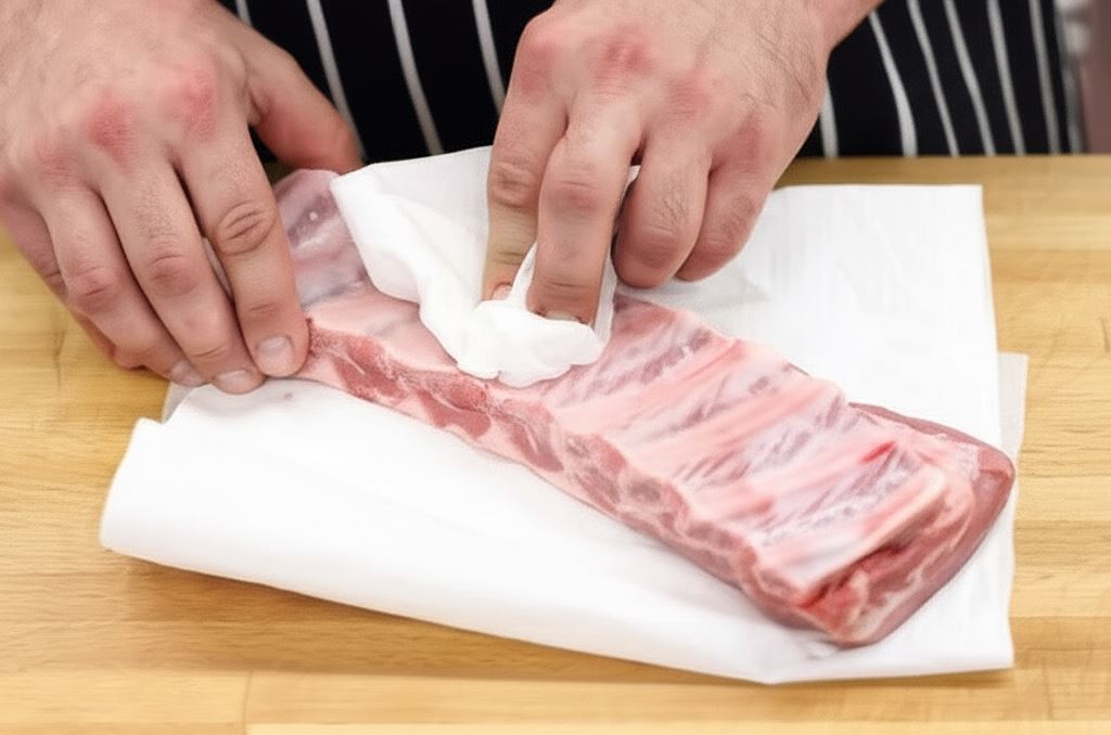 Żeberka opłucz i wysusz. Nie przecinaj ich.