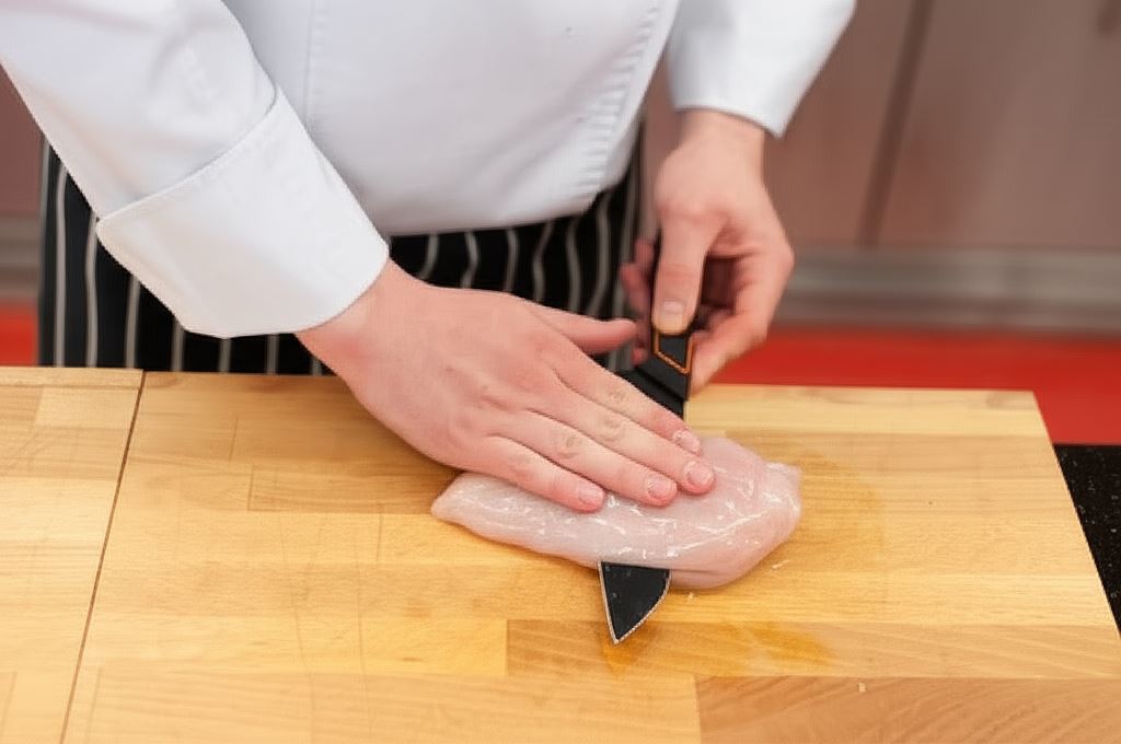 Filety z kurczaka przekrój wzdłużnie na połowę.