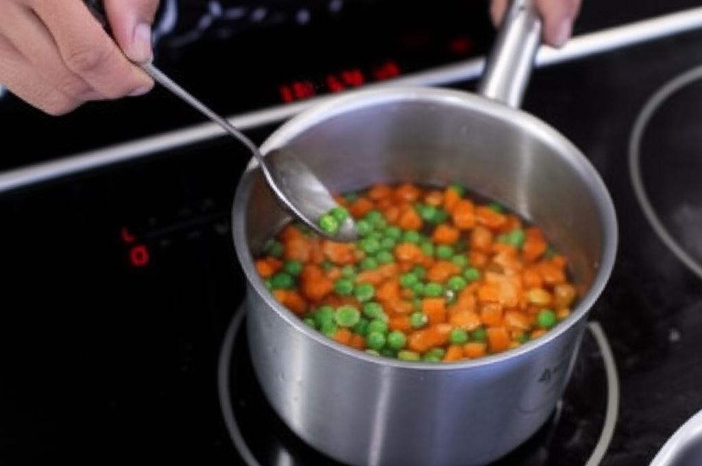 Gotuj warzywa przez 1 minutę. Po ugotowaniu odcedź i zachowaj 3-5 łyżek wody z gotowania.