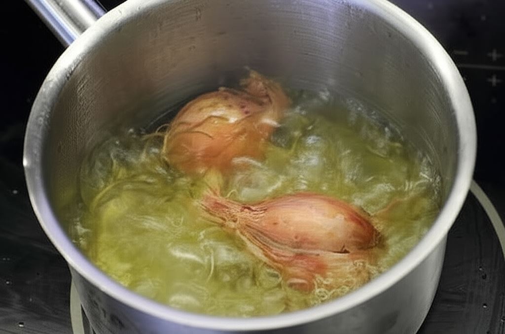 Szalotki blanszuj przez 3 minuty w gotującej się wodzie. Zdejmij skórkę.