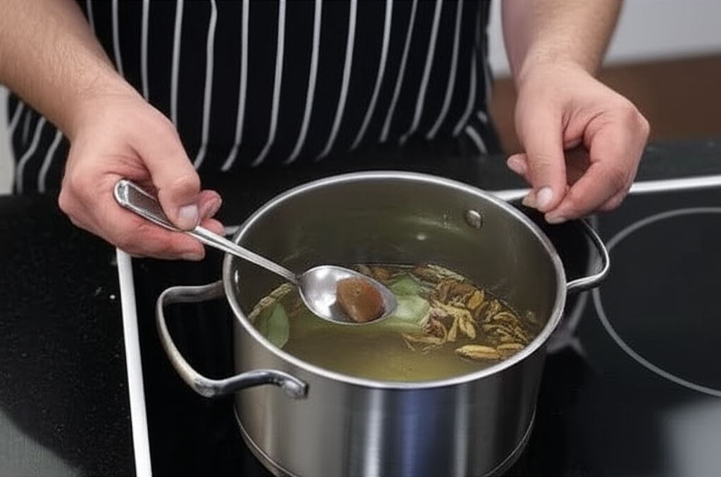 Grzyby potnij w cienkie paski i razem z przyprawami wrzuć do wywaru. Dodaj również kostkę Bulionu grzybowego Knorr i gotuj całość jeszcze przez około 15 minut.