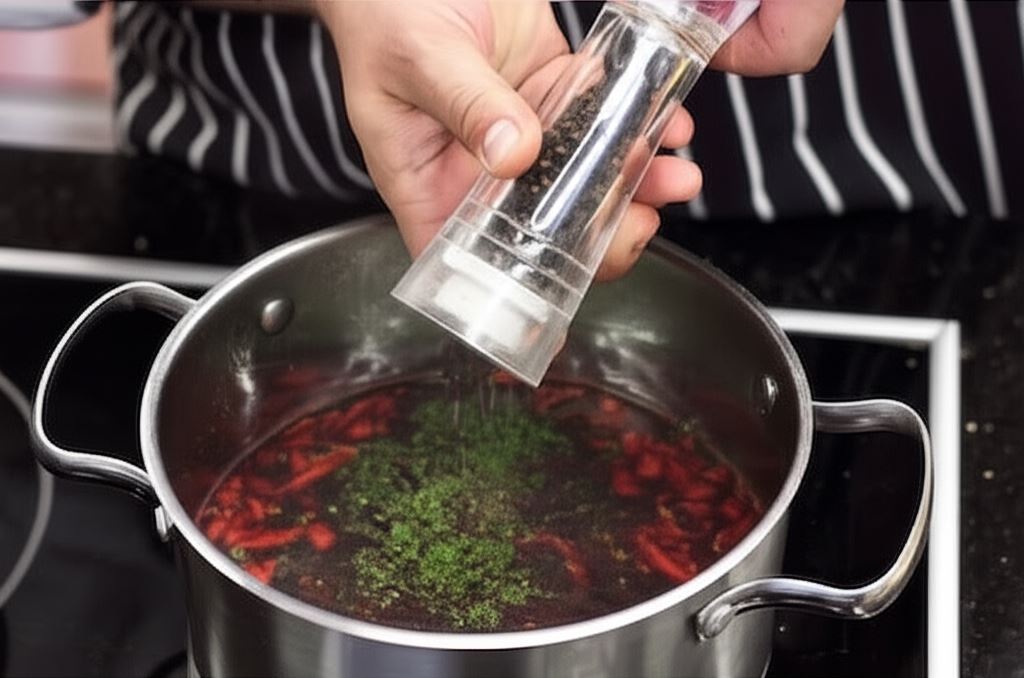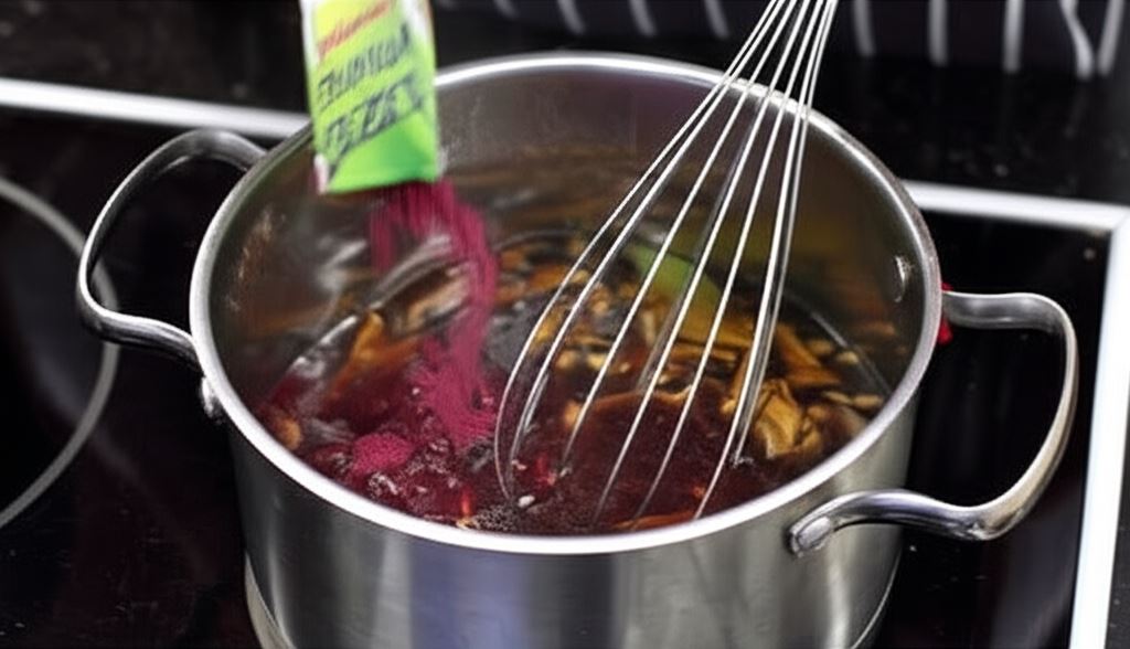 Potem przypraw wywar saszetką barszczu czerwonego Knorr i starannie zamieszaj.