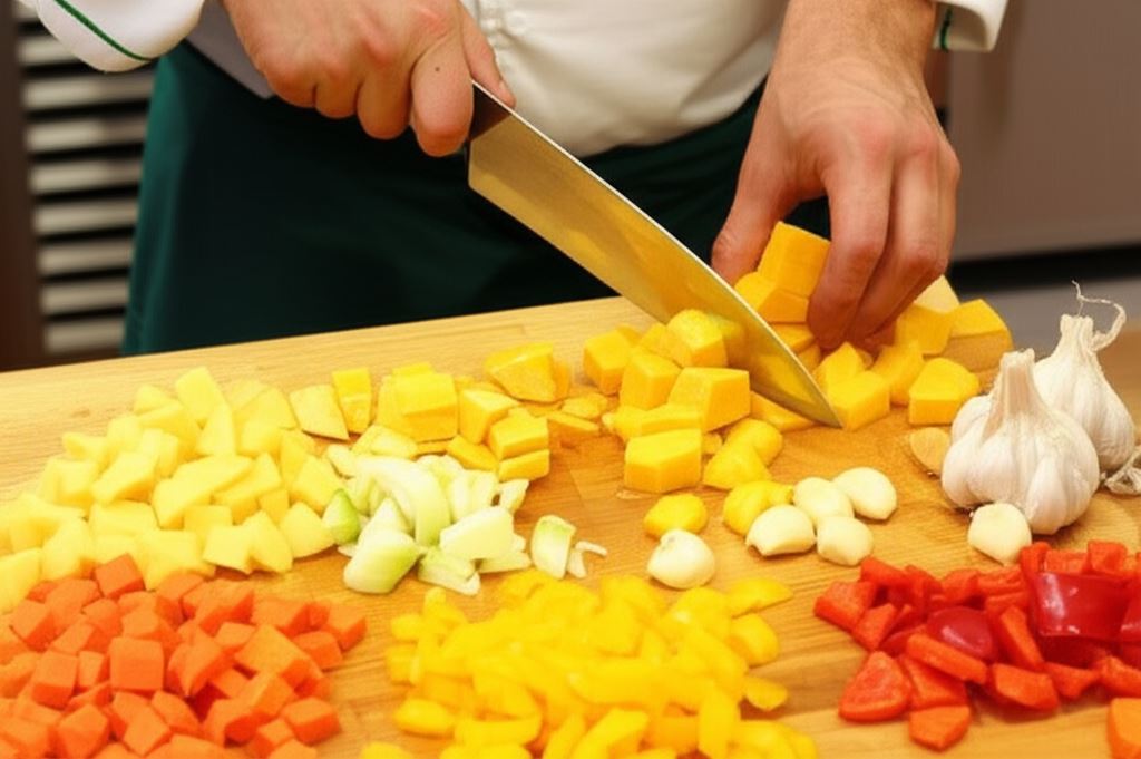 Warzywa opłucz i pokrój w kosteczkę lub na plasterki. Z papryczki chilli wyciągnij pestki i drobno posiekaj.