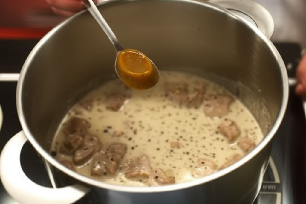 Kiedy mięso stanie się miękkie, a sos trochę zgęstnieje, całość dopraw śmietaną i wsyp Bulionetkę wołową Knorr, która uwydatni głęboki smak potrawy