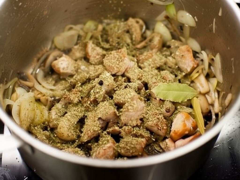 Liść laurowy, często nazywany bobkowym, to jedna z najstarszych przypraw używanych w polskiej kuchni. Nadaje potrawom wytrawny, lekko gorzkawy aromat, który doskonale równoważy słodycz cebuli i pieczarek w gulaszu.