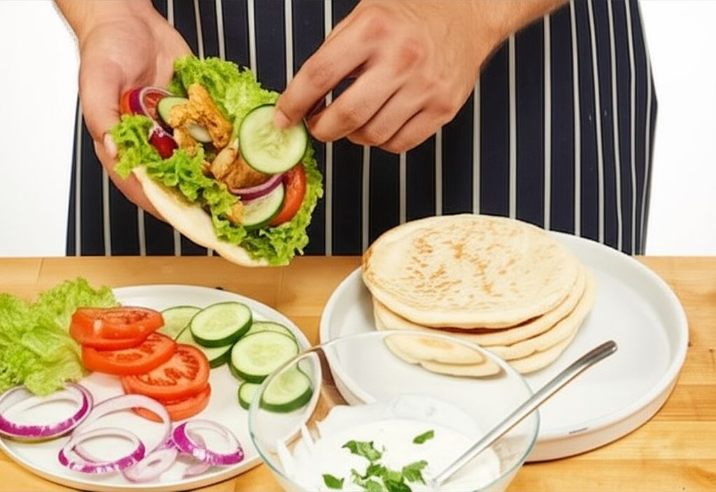 Wypróbuj różne warianty tego dania – dodaj paprykę, kukurydzę lub oliwki. Możesz też zastąpić miętę kolendrą lub bazylią, a dla ostrzejszego smaku dodać do sosu odrobinę chili. Eksperymentuj z różnymi rodzajami pieczywa – oprócz pity sprawdzi się też tortilla lub cienki placek naan.