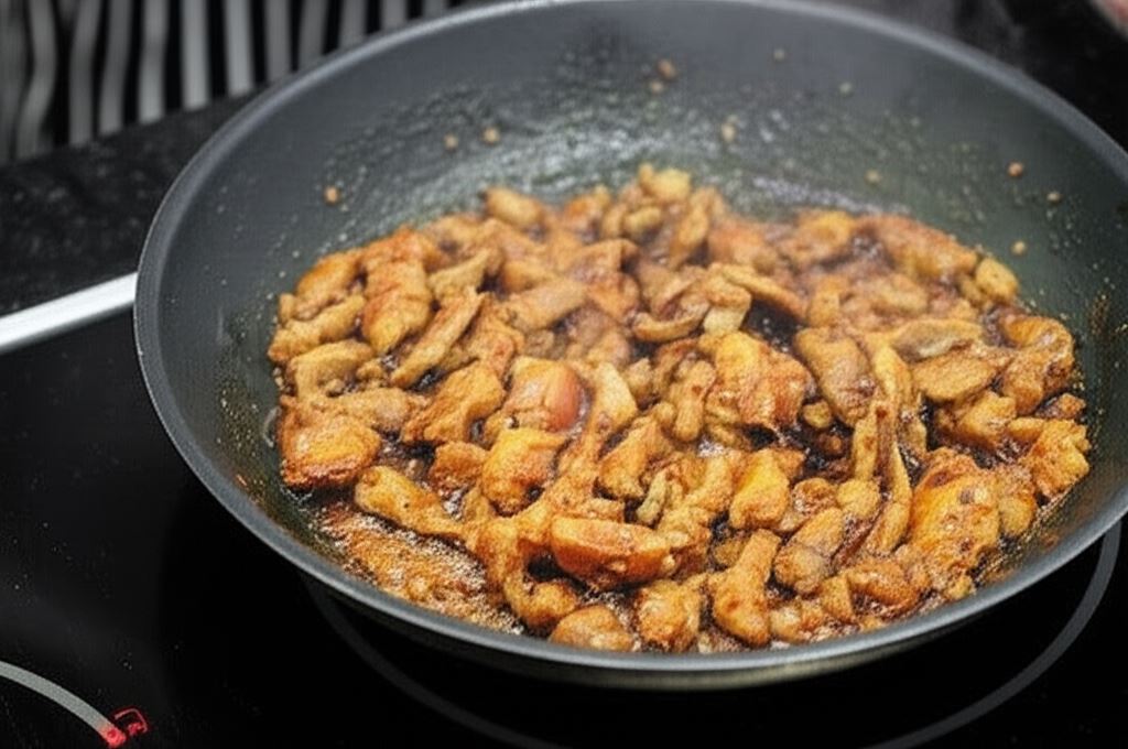 Przyrumień na patelni, pod koniec smażenia dolej wodę i duś pod pokrywką około 10 minut. Przygotowanego gyrosa serwuj z ulubionymi dodatkami, frytkami lub w chlebie pita.