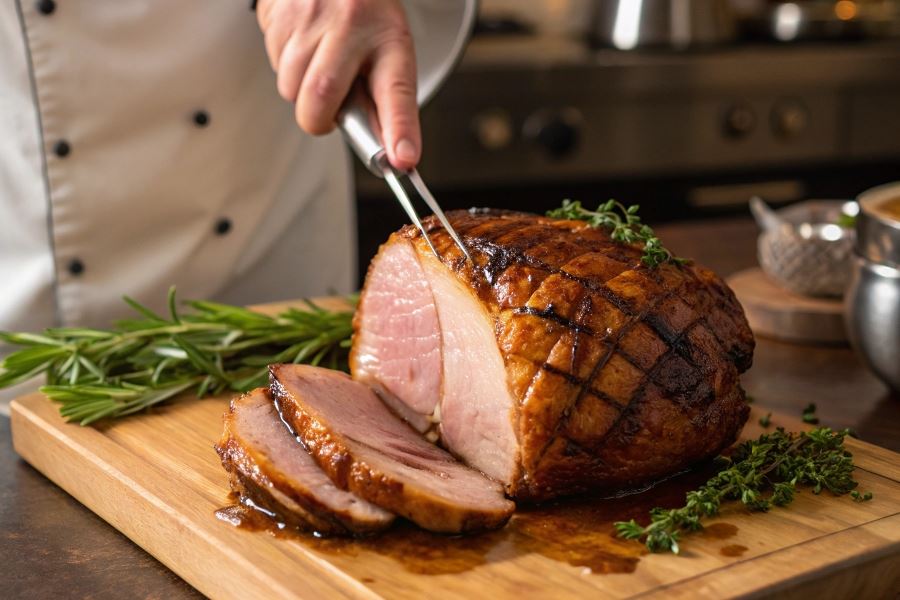 Profesjonalna wskazówka: Szynkę najlepiej wyjąć z lodówki na 1-2 godziny przed przygotowaniem, aby osiągnęła temperaturę pokojową, co zapewni równomierne pieczenie.