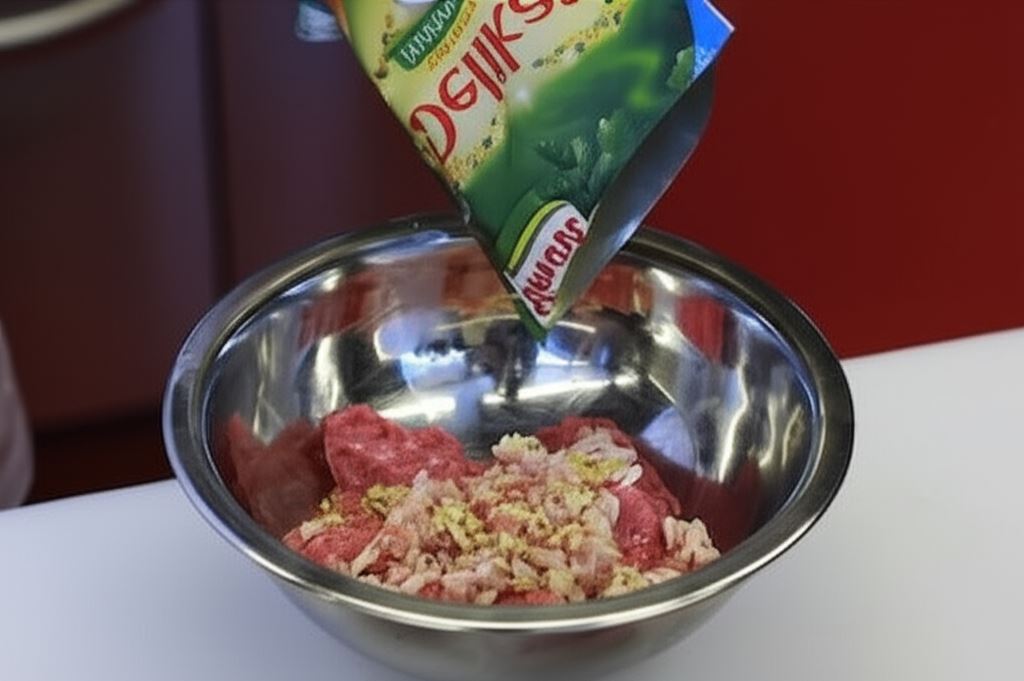 Przypraw mięso mielone przyprawą Delikat Knorr, ziołami prowansalskimi i pieprzem czarnym, po czym starannie wymieszaj i wyrób.