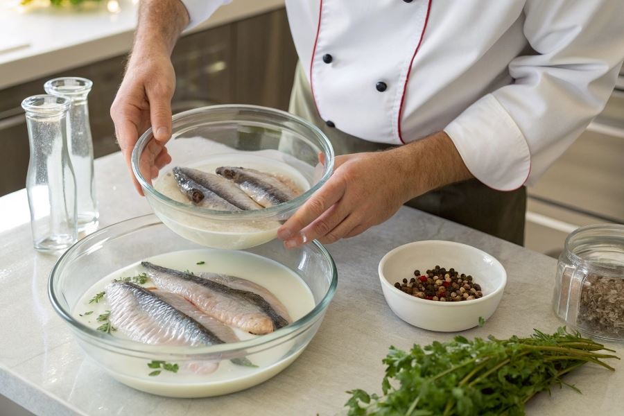 Wskazówka eksperta: Przed moczeniem możesz naciąć filety śledziowe w kilku miejscach – przyspieszy to proces wypłukiwania soli i skróci czas moczenia nawet o 30%.