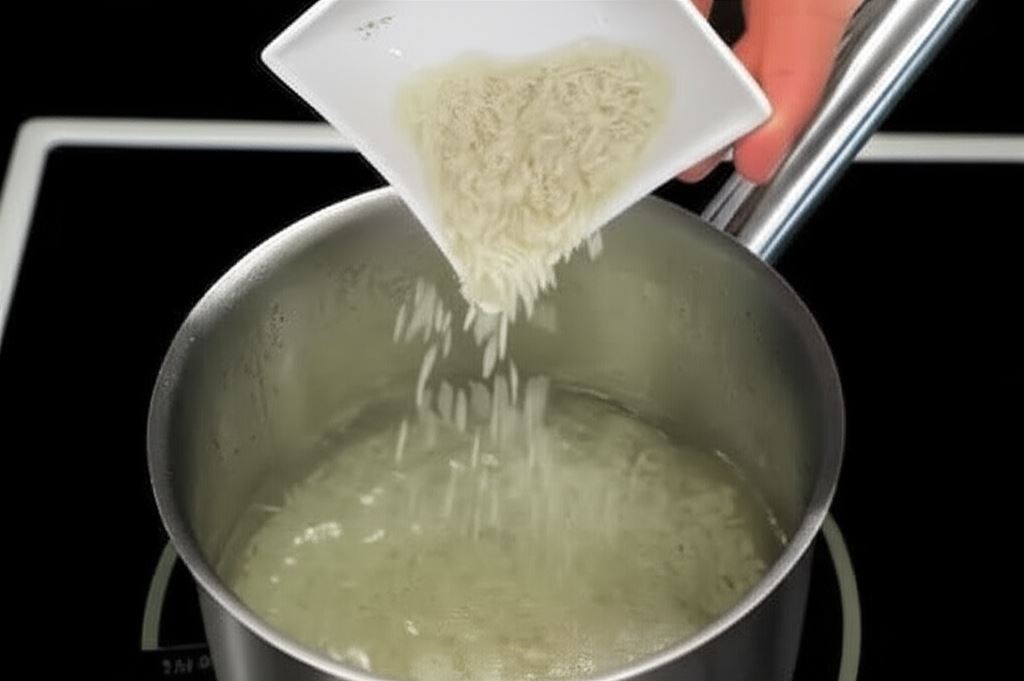 Ryż wsyp do osolonej, wrzącej wody i gotuj przez 15 minut.