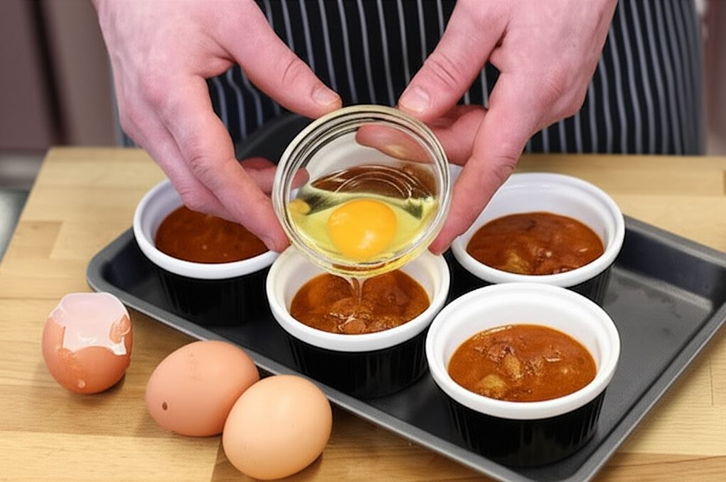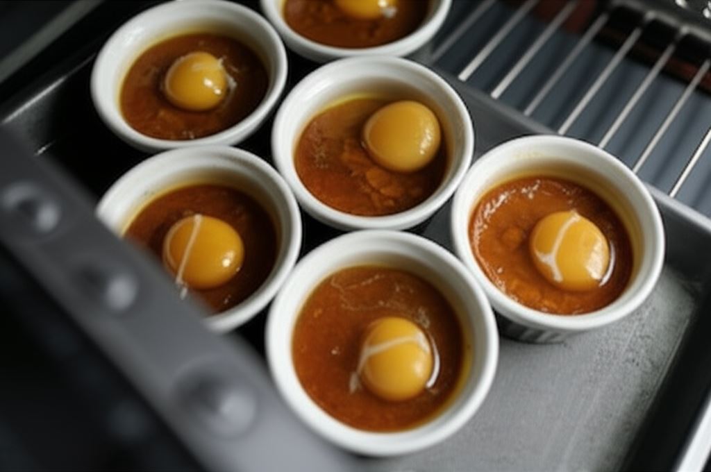 Umieść naczynia w rozgrzanym piekarniku i zapiekaj przez kilka minut aż białka się zetną. Serwuj od razu, posypując każdą porcję siekaną natką pietruszki.
