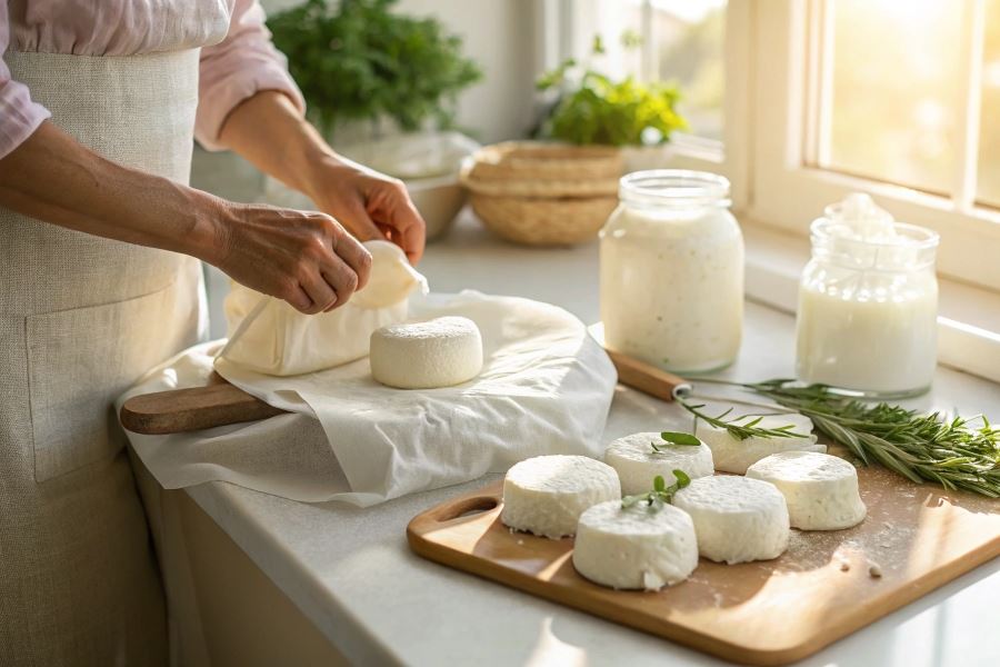 Proces produkcji koziego twarogu rozpoczyna się od odpowiedniego przygotowania mleka. Świeże kozie mleko należy najpierw przefiltrować przez sterylną gazę, aby usunąć wszelkie zanieczyszczenia. Następnie przeprowadza się pasteryzację w temperaturze 72°C przez 15-20 sekund (metoda HTST) lub 63°C przez 30 minut (metoda niskotemperaturowa). Ta druga metoda jest preferowana przez rzemieślniczych producentów, gdyż zachowuje więcej naturalnych enzymów i charakterystyczny smak koziego mleka.