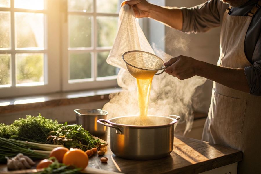 Profesjonalny trik: dodaj 2-3 ziarna ziela angielskiego, liść laurowy oraz kilka ziaren pieprzu już na początku gotowania wywaru, aby aromaty zdążyły się uwolnić.