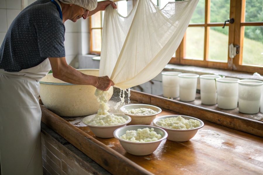 Wskazówka: Aby uzyskać bardziej kremowy twaróg, odcedzaj krócej. Dla twardszej konsystencji, możesz dodatkowo obciążyć ser podczas odcedzania.