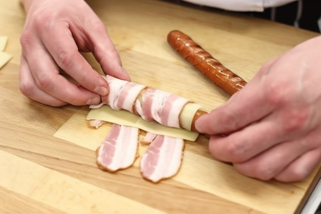 Zmodyfikuj klasyczne hot dogi zawijając kiełbaski w plastry wędzonego boczku i sera żółtego, a następnie podgrzewając je na grillu. Dopełnieniem smaku będzie wyjątkowy sos na bazie majonezu, ketchupu, musztardy i sosu sałatkowego. Ta kombinacja sprawi, że Twoje hot dogi będą niepowtarzalne!