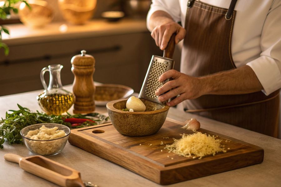 Tradycyjny moździerz najlepiej sprawdza się do rozdrabniania przypraw, orzechów i nasion. Technika polega na połączeniu uderzeń z ruchem obrotowym, co pozwala nie tylko rozdrobnić, ale i uwolnić olejki eteryczne. Kamienne i marmurowe moździerze dają najlepsze rezultaty dzięki odpowiedniej wadze i teksturze powierzchni.