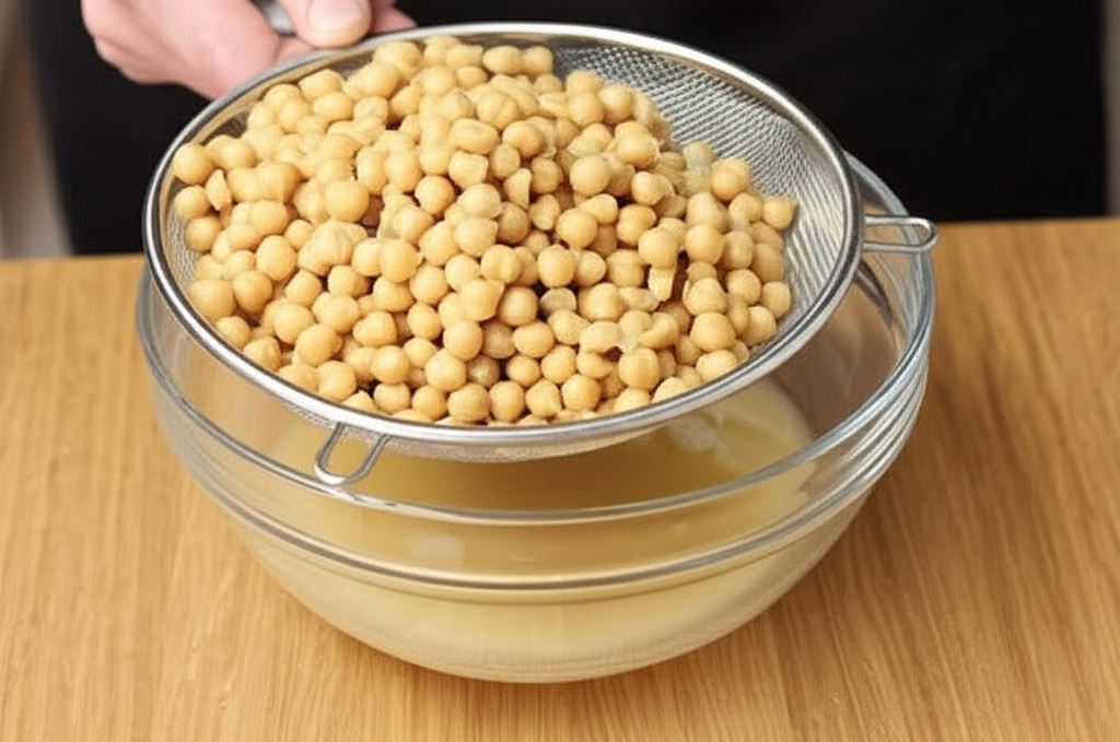 Ciecierzycę odcedź z zalewy i umieść w misie blendera.