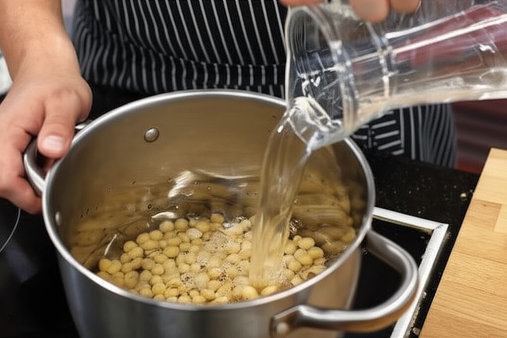 Kolejnego dnia odcedź ciecierzycę, zalej nową wodą, wsyp szczyptę soli i gotuj do momentu, aż groch stanie się miękki.