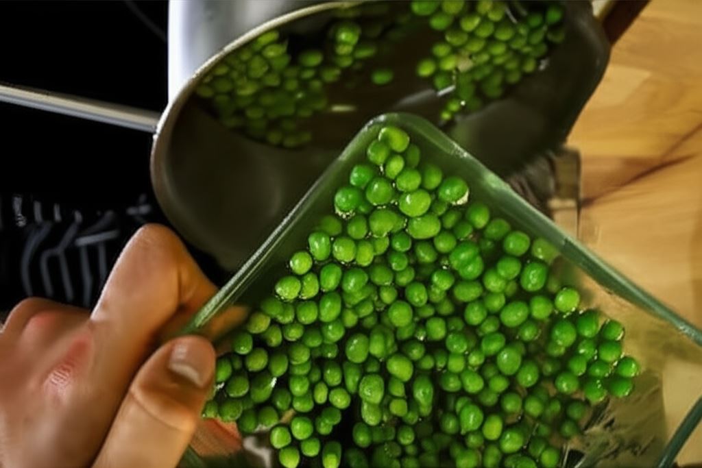 Zamrożony groszek zanurz w gotującej się wodzie na 30 sekund.
