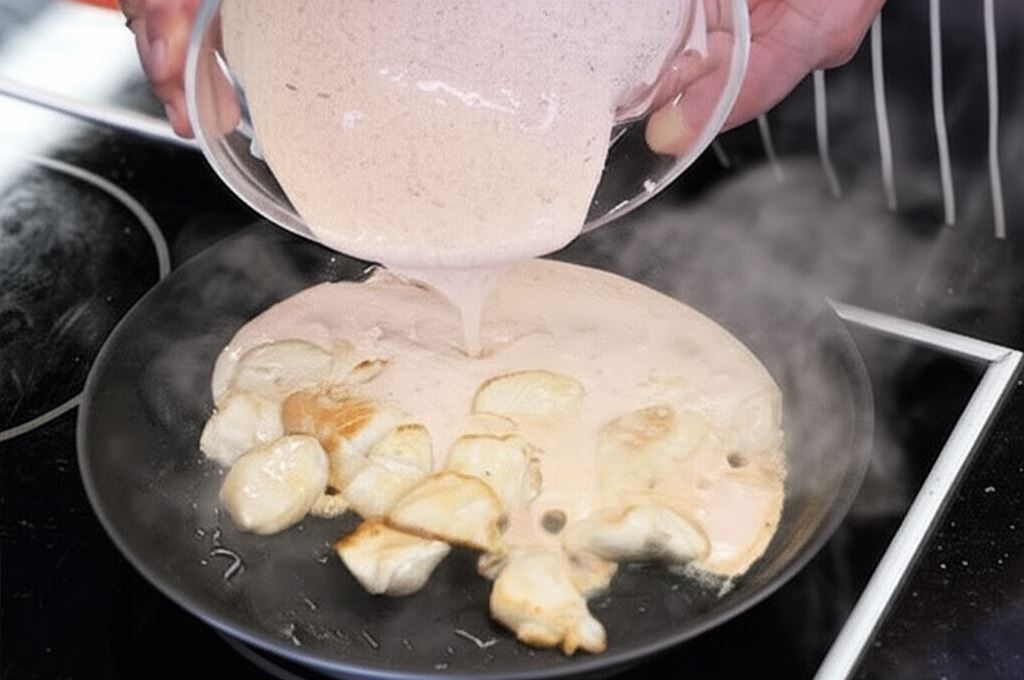 Dodaj sos do kurczaka i gotuj przez 8 minut.