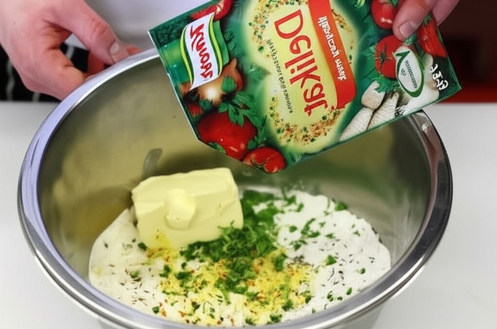 Posiekaj chilli i kolendrę. Wymieszaj w misce oba rodzaje mąki. Dodaj ziarna kuminu, chili, kolendrę, przyprawę Knorr oraz sól wedle smaku. Połącz z margaryną i 2 łyżkami wody. Wyrób starannie ciasto, po czym odstaw na godzinę do lodówki.