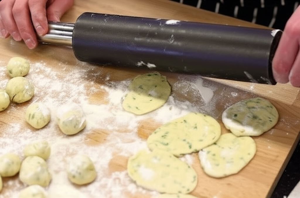 Posypując mąką rozwałkuj je na placki o grubości 3 milimetrów.