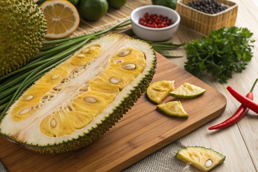 Niedojrzały jackfruit zyskał popularność jako roślinny zamiennik mięsa ze względu na włóknistą teksturę przypominającą szarpaną wieprzowinę. W przeciwieństwie do durianu, jackfruit ma przyjemny, słodki zapach i nie zawiera tak dużej ilości tłuszczu. Jednocześnie przewyższa kokosa pod względem zawartości białka i błonnika, oferując przy tym mniej kalorii.