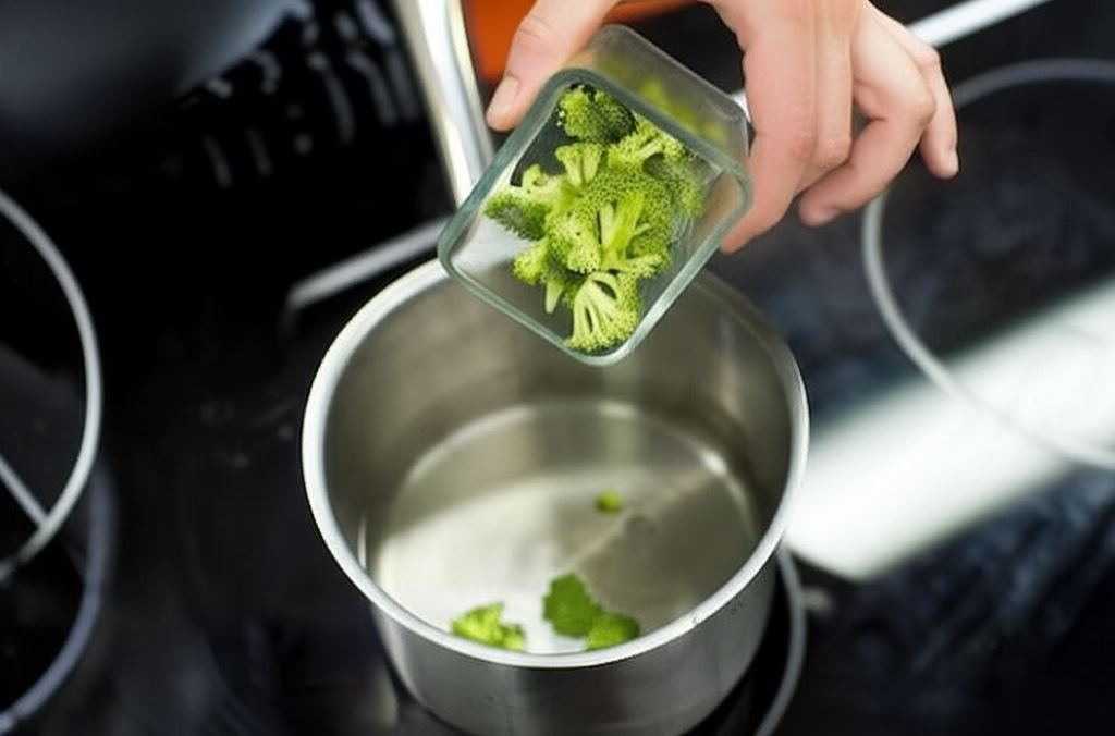 Oczyszczone różyczki brokuła gotuj przez 3-4 minuty w gotującej się wodzie.