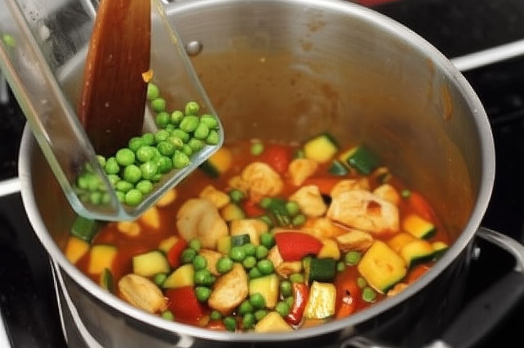 Delikatne kawałki kurczaka przesmażone na oliwie, chrupiąca papryka, soczysta cukinia i słodki groszek tworzą harmonijną całość, której smak podkreśla Knorr Naturalnie Smaczne – Gulasz. Danie jest nie tylko pyszne, ale też niezwykle proste w przygotowaniu – wszystko gotujesz w jednym garnku, oszczędzając czas i zmywanie!