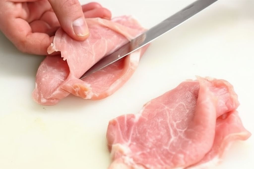 Mięso opłucz, wysusz, pozbądź się fragmentów tłuszczu i błonek. W każdym kawałku schabu wykonaj szerokie kieszonki.