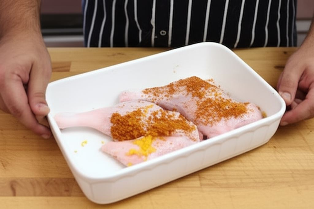 Oczyszczone i osuszone udka kaczki skrop sokiem cytrynowym, posyp przyprawą Knorr oraz startą skórką z 2 pomarańczy, odłóż na bok na minimum godzinę.