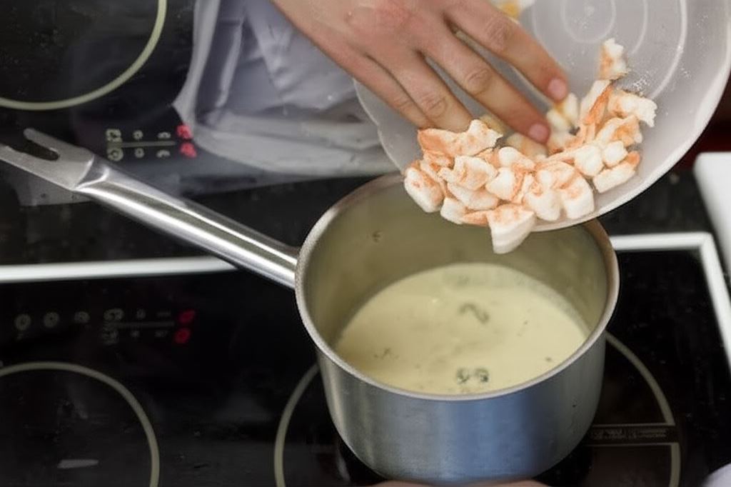 Połącz dokładnie Fix Spaghetti 4 sery z brokułami Knorr ze śmietaną i 150 mililitrami wody. Zagotuj fix i dodaj krewetki.