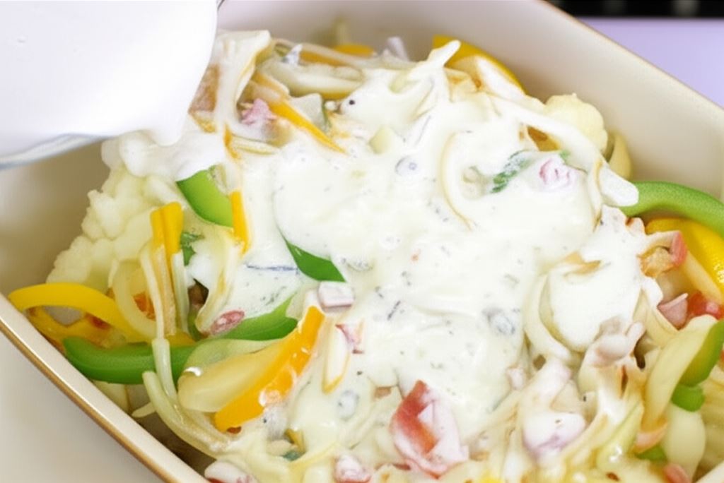 Odkryj nowe oblicze kalafiora! Nasza zapiekanka z kalafiora to prawdziwa eksplozja smaków, która odmieni Twoje wyobrażenie o tym niedocenianym warzywie. Delikatne różyczki kalafiora otulone kremowym sosem serowym, w towarzystwie aromatycznej szynki i kolorowych papryk tworzą danie, które zachwyci nawet najbardziej wymagających domowników.