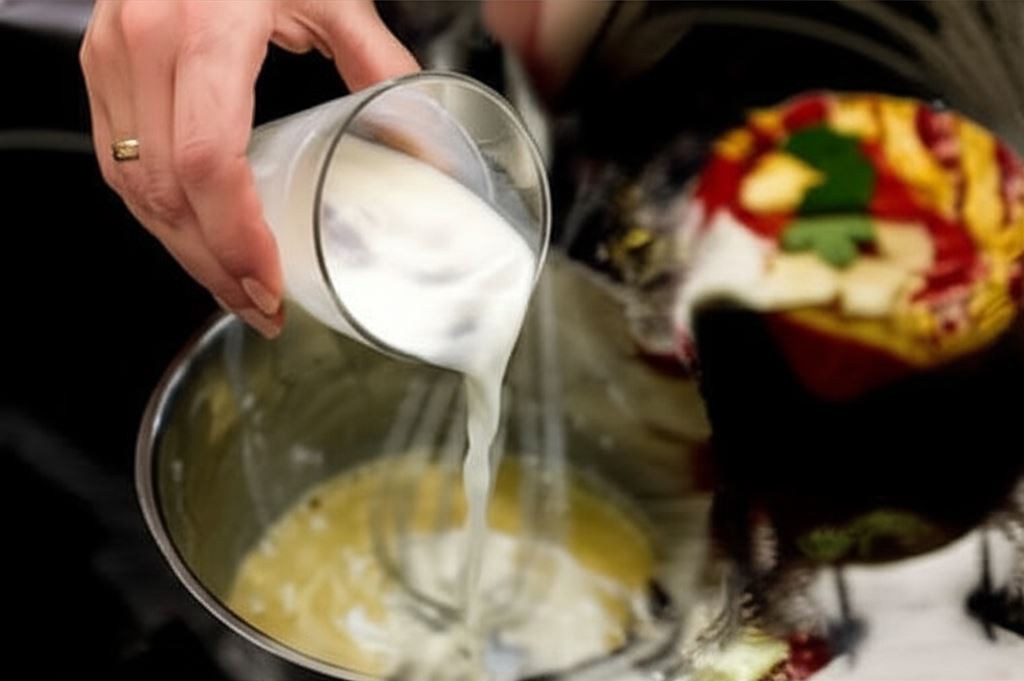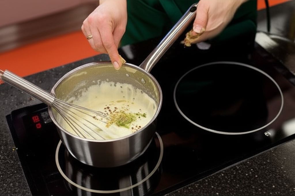 Przyrumień mąkę na stopionych 3 łyżkach masła. Dodaj szklankę mleka.